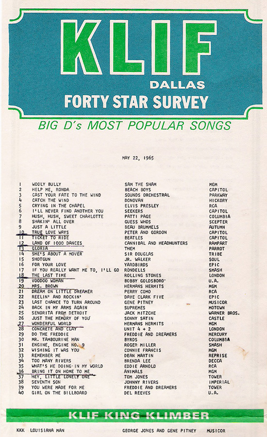 Other KLIF surveys (which underwent a series of name changes over the years) appear in the pages of the Fab Forties. (Click on the survey to see a legibile version.) |