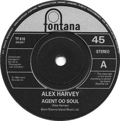 The label of Alex Harvey's Fontana single spells the title 'Agent OO Soul' and erroneously credits Harvey as the songwriter, when the writers were in fact Charles Hatcher (aka Edwin Starr) and Bill Sharpley.
