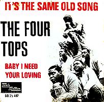 Up from #15 to #7 for the Four Tops' third Fab Forty entry. Note that the B-side of this continental release is 'Baby I Need Your Loving'. This song had been issued as a UK single in 1964 c/w 'Call On Me' and had appeared in the Fab Forty at the start of the year. The song is so well-known that most people will be surprised to hear that it never made the UK Nationals. The UK B-side of 'It's the Same Old Song' was 'Your Love is Amazing'. |