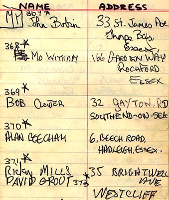 (left): Fingers and Knees The band was the last to add its name to the Knees Club book In 2006, John Bobin got in touch to tell us: I still play as a regular gigging musician and the most