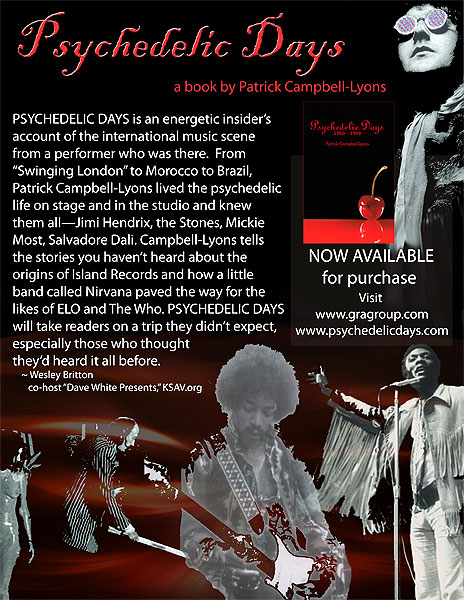 Much of the band's history is covered in the interviews and features linked below, but Patrick was kind enough to answer some additional questions for Radio London. He says: "Fans of your Radio London website will love my new book Psychedelic Days (Link below). Mojo gave it a 4-star review and Shindig said it was one of the best books written about the Sixties music scene. In America, where I have been promoting it mostly on the radio and in the press, it has had a wonderful reaction."