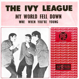 The picture sleeve on the right was released in the Netherlands, where it appears the typographer had two attempts at getting the title right! This Carter/Lewis composition was covered in the USA by studio band, Sagittarius. Curt Boettcher, the producer of both Along Comes Mary and the Association's debut album, And Then Along Comes the Association, formed the band with Byrds' producer Gary Usherwith. The Ivy League's Beachboyesque harmonies were recreated by Bruce Johnston and Terry Melcher. The Sagittarius version of My World Fell Down scraped into the US Hot Hundred at #70 in July '67. |