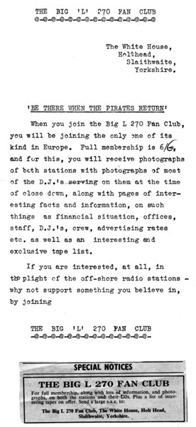 Our friend the offshore historian, Hans Knot, has very kindly shared this clipping concerning the 'Big L 270' Club. Hans says: