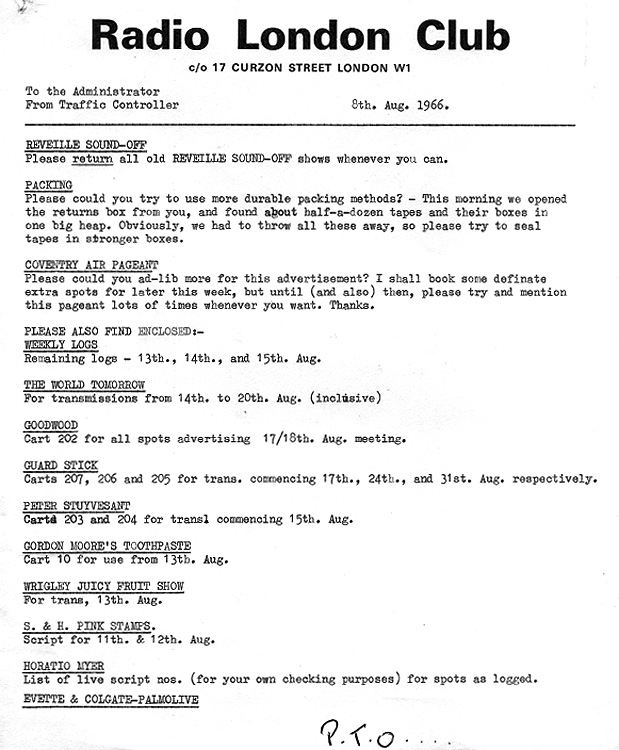 As with the previously-featured station log (see Wijnand's Memorabilia, p4) Geoff used Radio London Club headed paper. |