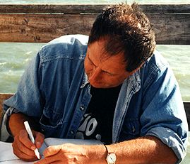 (Picture: Personal ap-pierance. Newly-famous author, Chris Elliot signs his life away...