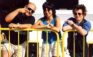 Another new 'kid' on the block' was Caroline South's Curly-headed Kid In the Third Row, Steve Young, whose voice could be heard hitting the airwaves on 1134 this August. Steve become a granddad for the first time in 2001 (see June Happenings) but he's been taking it in his stride. As Keefers' photograph, taken aboard the Mi Amigo, shows, he's a laid-back kind of guy! |