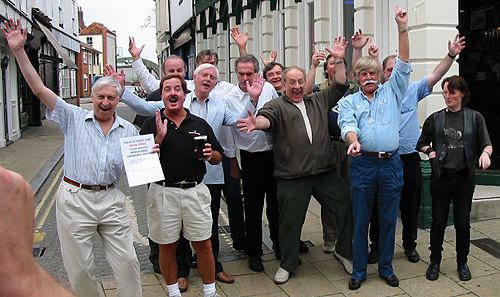 What a unique opportunity to take a picture of four Radio London originals!John Edward, Ian Damon, Willy Walker, and kneeling, Keith Skues.Click on the picture for a bigger version you can put on your bedroom wall, or wherever you like really...Our thanks to everyone for making it such a memorable gathering! |